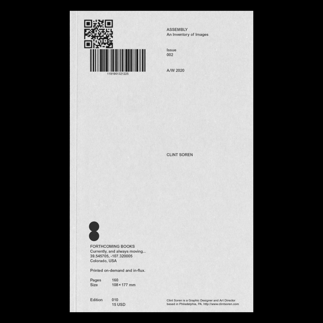 Like Richard Kostelanetz's pioneering * Assembling * and other gathered publications of the 1960s and 70s such as Omnibus News for instance, * ASSEMBLY * aims to provide contributors with the space to experiment and publish images that otherwise sit uncomfortably at the periphery of their practice, allowing for a type of publishing that pushed the boundaries of what is otherwise expected from, or accepted by the “carefully curated” and increasingly convoluted feeds that surround us."