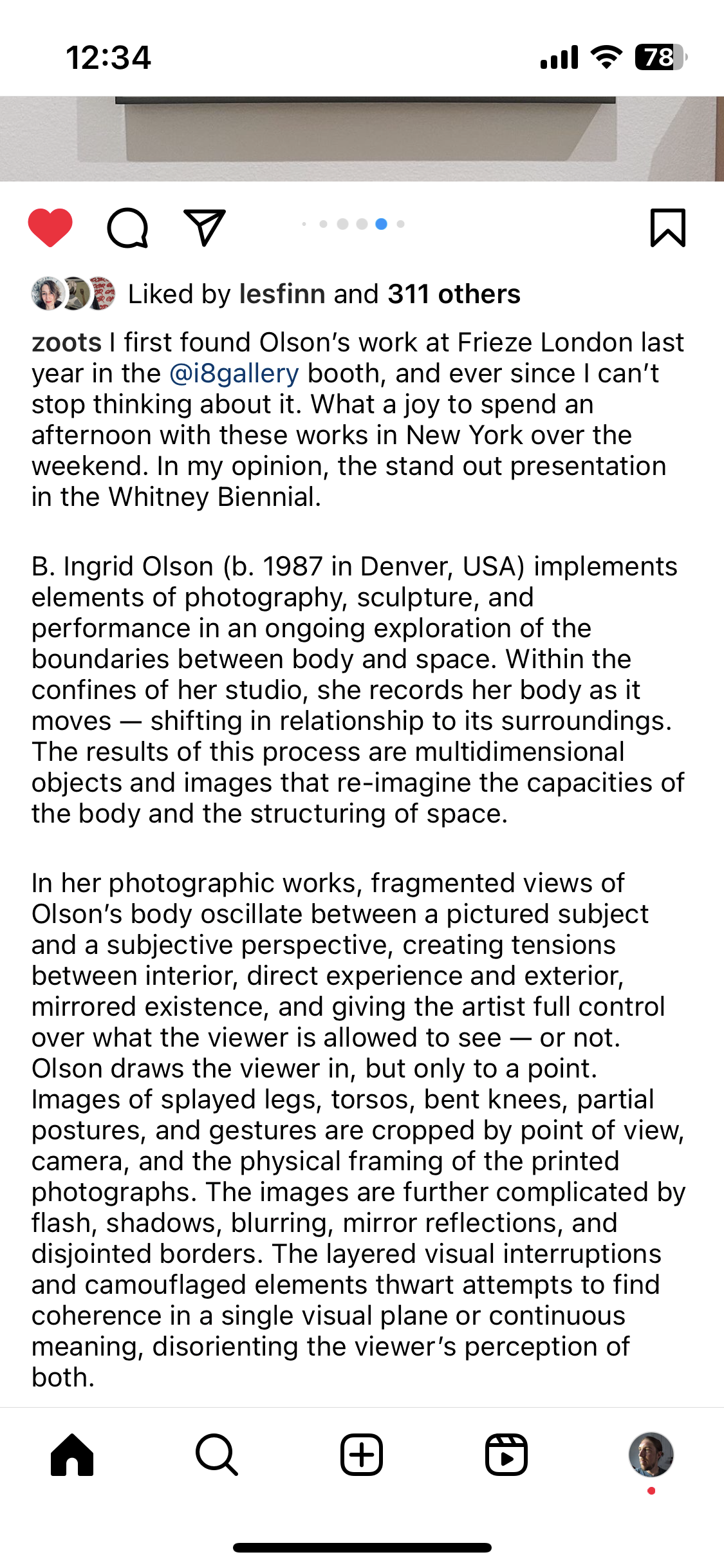 @zoots on Instagram: "B. Ingrid Olson (b. 1987 in Denver, USA) implements elements of photography, sculpture, and performance in an ongoing exploration of the boundaries between body and space. Within the confines of her studio, she records her body as it moves - shifting in relationship to its surroundings.