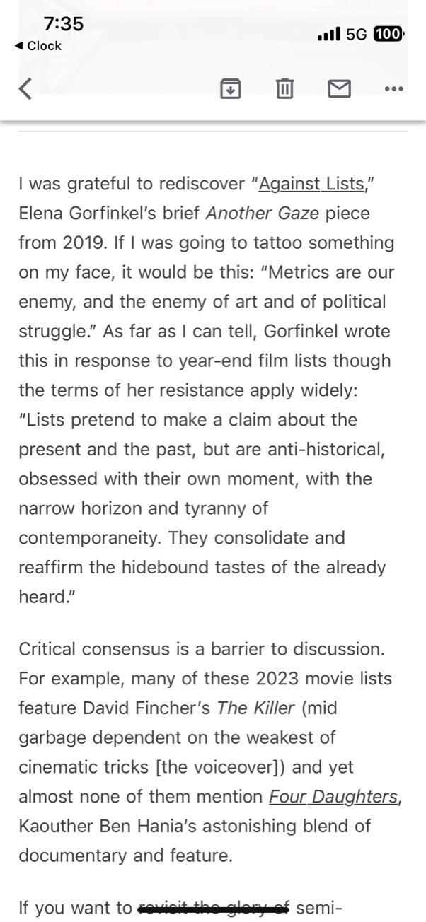 Elena Gorfinkel's "Against Lists"