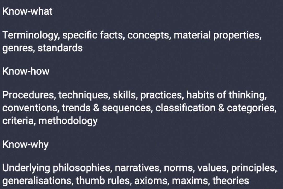 Know-what, know-how, and know-why